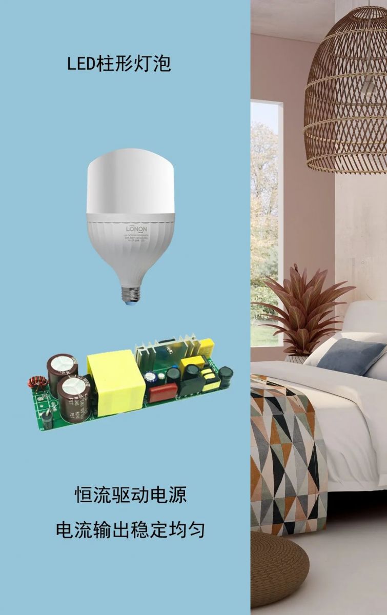 朗能LED柱形燈泡,采用恒流驅(qū)動(dòng)電源方案,確保電流穩(wěn)定輸出、無可視頻閃。